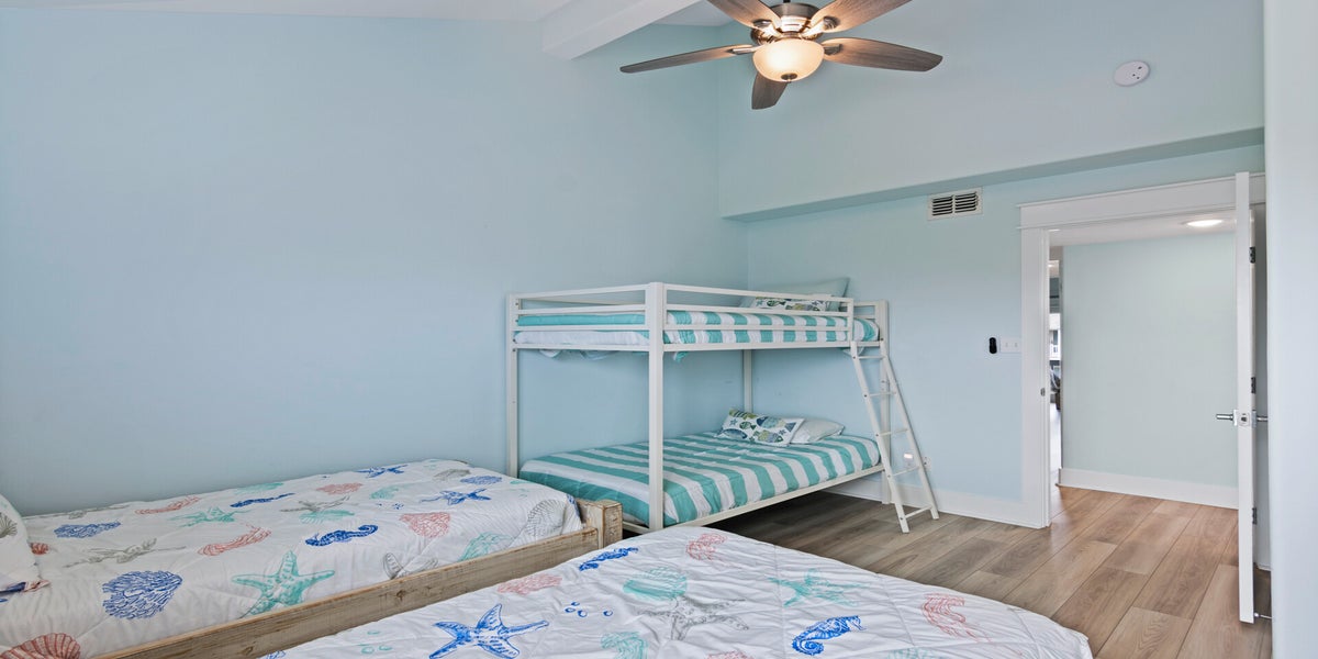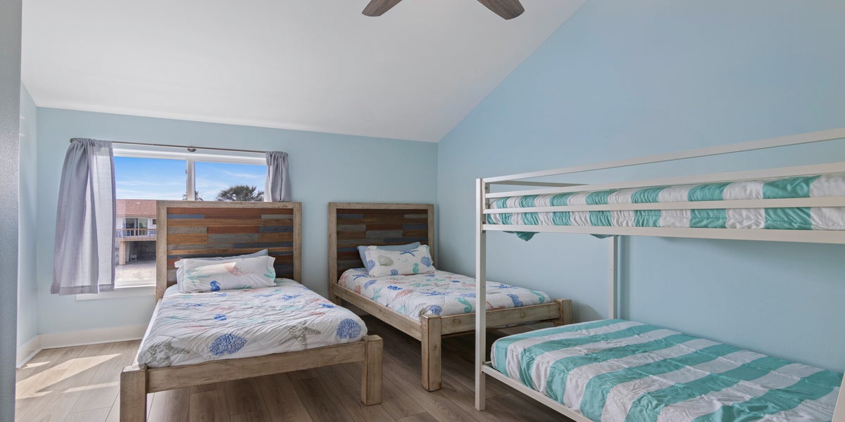 Guest Room: Two twin beds plus a twin-over-twin bunk bed